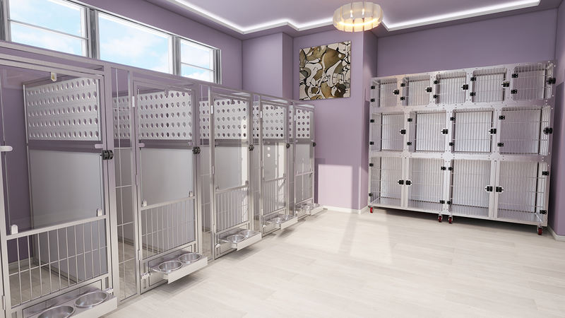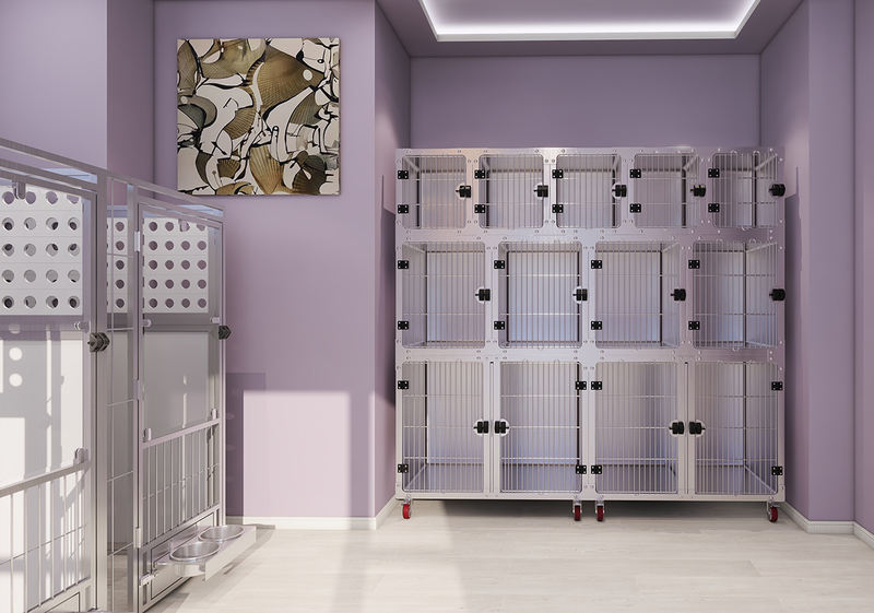 Lohas-serien repræsenterer vores seneste walk-in kennelsystem. Alle komponenter i Multi-purpose Animal Boarding og Quarantine Cage Series kan tilpasses til dine behov og ledig plads. Fordøre, sidepaneler og tilbehør tilbyder flere konfigurationsmuligheder og fås i en række forskellige materialer. Din drømmekennel bliver en realitet her! En fleksibel kombination af rustfrit stål, HDPE med høj densitet, hærdet glas og/eller pulverlakeret stål giver omfattende materialemuligheder. Adskillige brugervenlige funktioner såsom roterende foderdøre, magnetiske låse med et enkelt tryk og ubesværet betjente løftedøre kan integreres i dette system. Vi glæder os over alle forespørgsler, krav og skræddersyede bestillinger. Vores team af ingeniører og designere vil med glæde producere 2D/3D-visualiseringer til din reference.