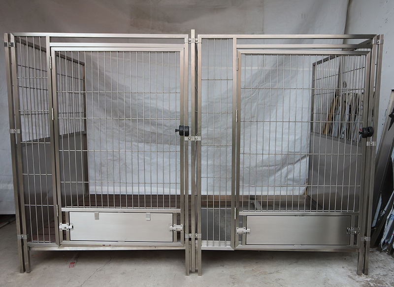 Multi-purpose Animal Boarding og Quarantine Cage kennelrammer bruger 20-gauge galvaniseret kraftigt stål, afsluttet med elektrostatisk pulverbelægning både indvendigt og udvendigt.